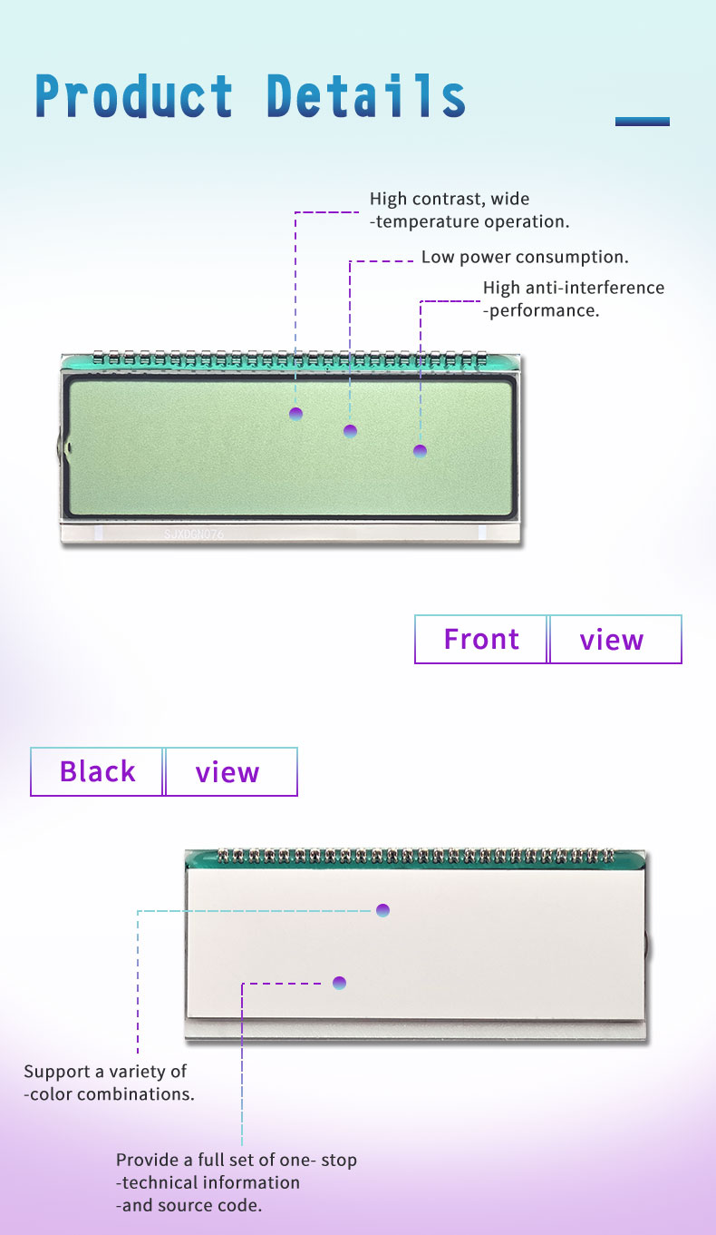 7 Segment LCD Instrument is a numeric display module designed for clear digit presentation, featuring low power consumption, hoher Kontrast, and reliable performance for measuring devices, panels, und Industrieinstrumente.