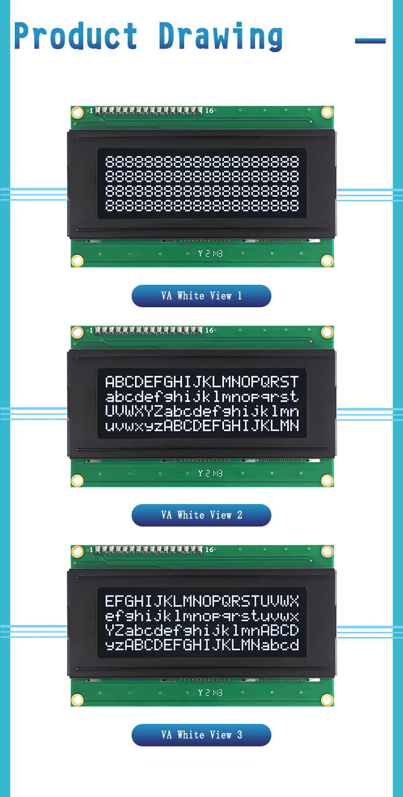 UN: Les écrans LCD à caractères sont largement utilisés dans les appareils électroménagers, contrôles industriels, dispositifs médicaux, électronique grand public, et projets de bricolage, adapté à l'affichage des informations d'état, options de menu, et données de base.