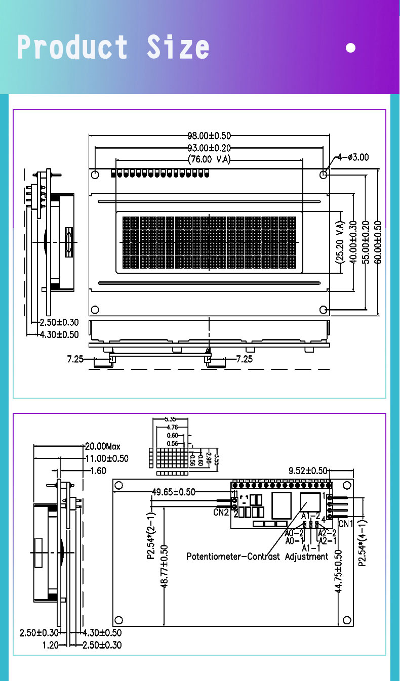 UN: Le module peut être personnalisé selon les exigences du client, y compris le contenu d'affichage des caractères, couleur du rétroéclairage, conception de coque, et d'autres paramètres, pour répondre aux besoins spécifiques des applications.
