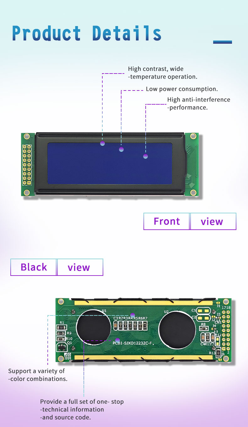 UN: Ce module est fabriqué à partir de panneaux LCD et de composants électroniques de haute qualité, conçu pour être stable et fiable, garantissant un fonctionnement stable à long terme et des performances d'affichage de haute qualité.