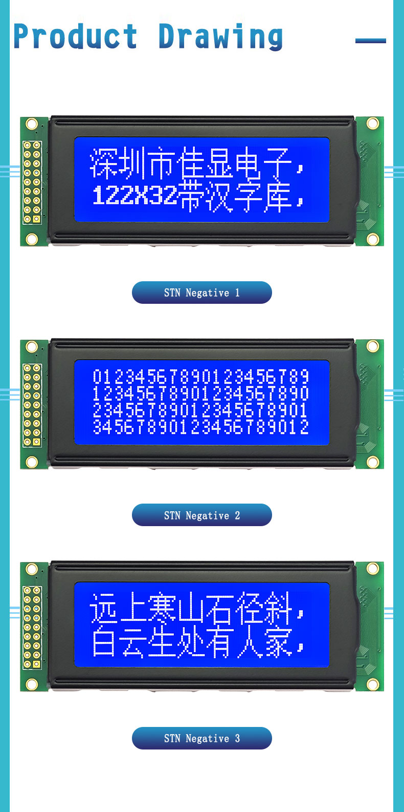 UN: Ce module convient aux applications nécessitant l'affichage de gros caractères et de chiffres, comme les compteurs, panneaux de commande d'équipement, et systèmes d'affichage d'informations.