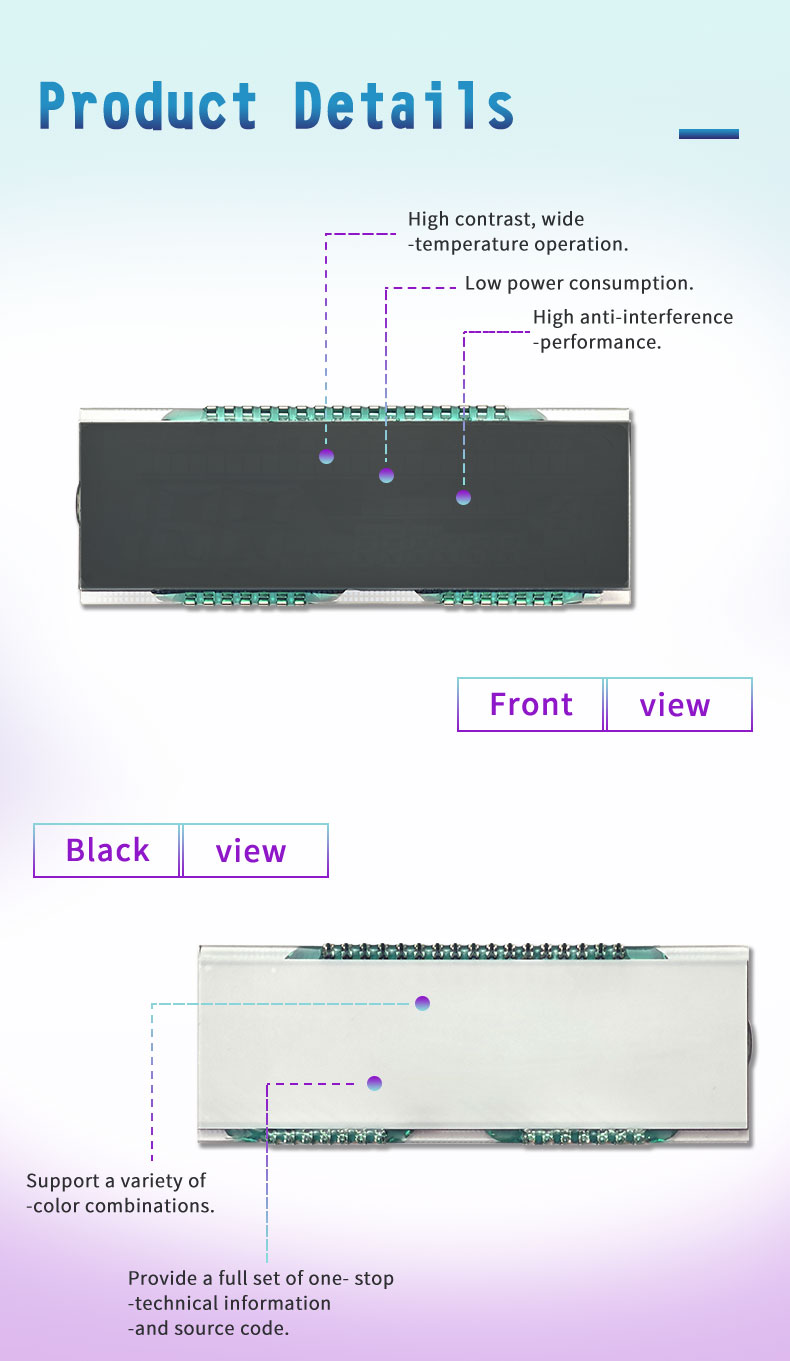 UN: Ce module convient aux applications nécessitant l'affichage de gros caractères et de chiffres, comme les compteurs, panneaux de commande d'équipement, et systèmes d'affichage d'informations.