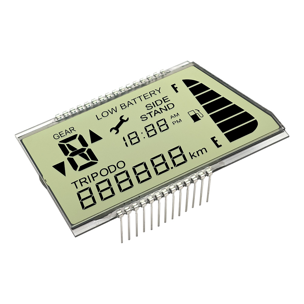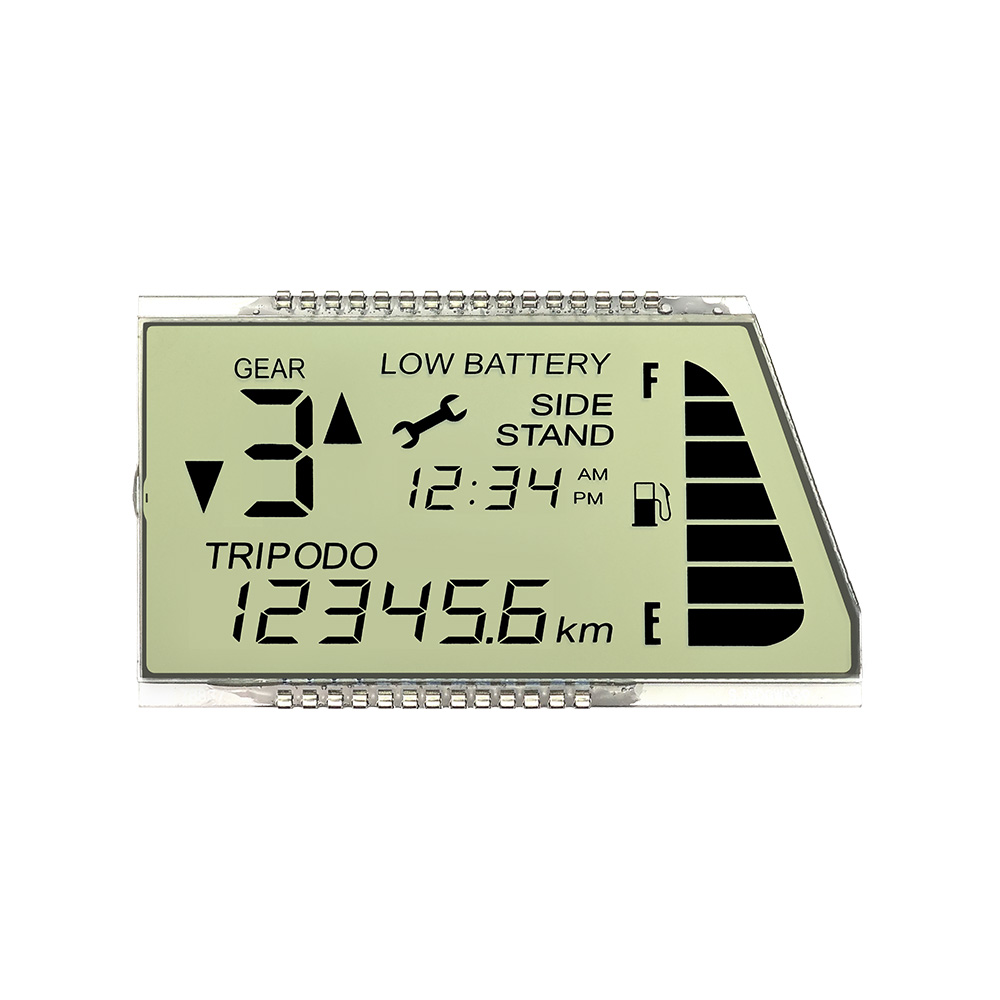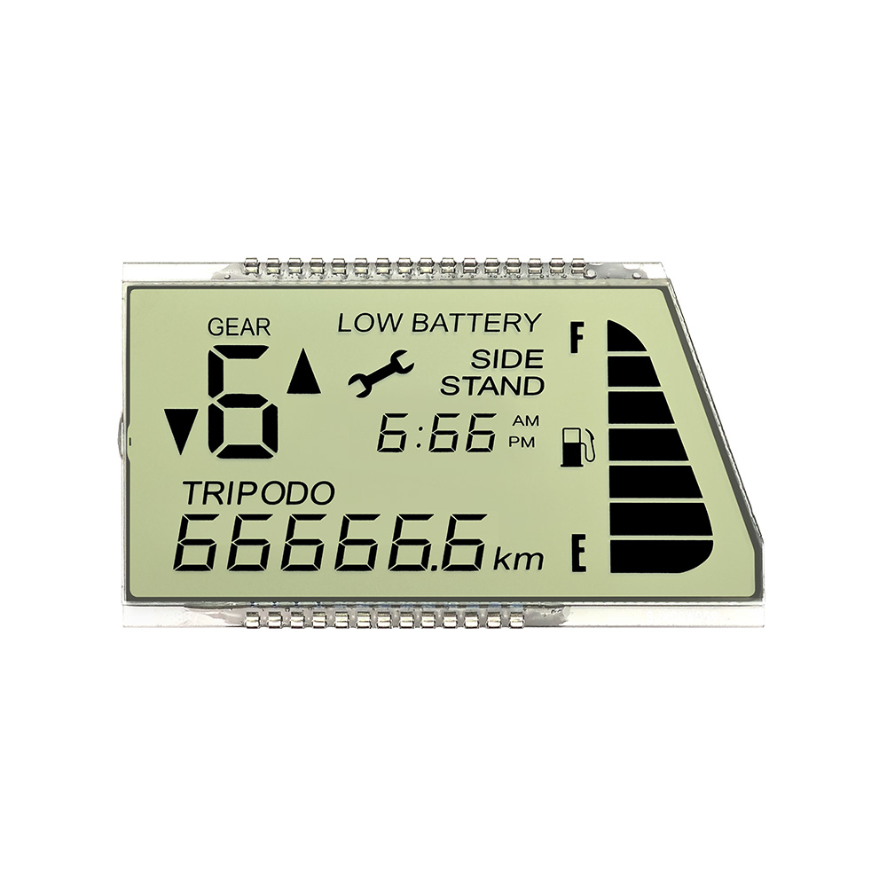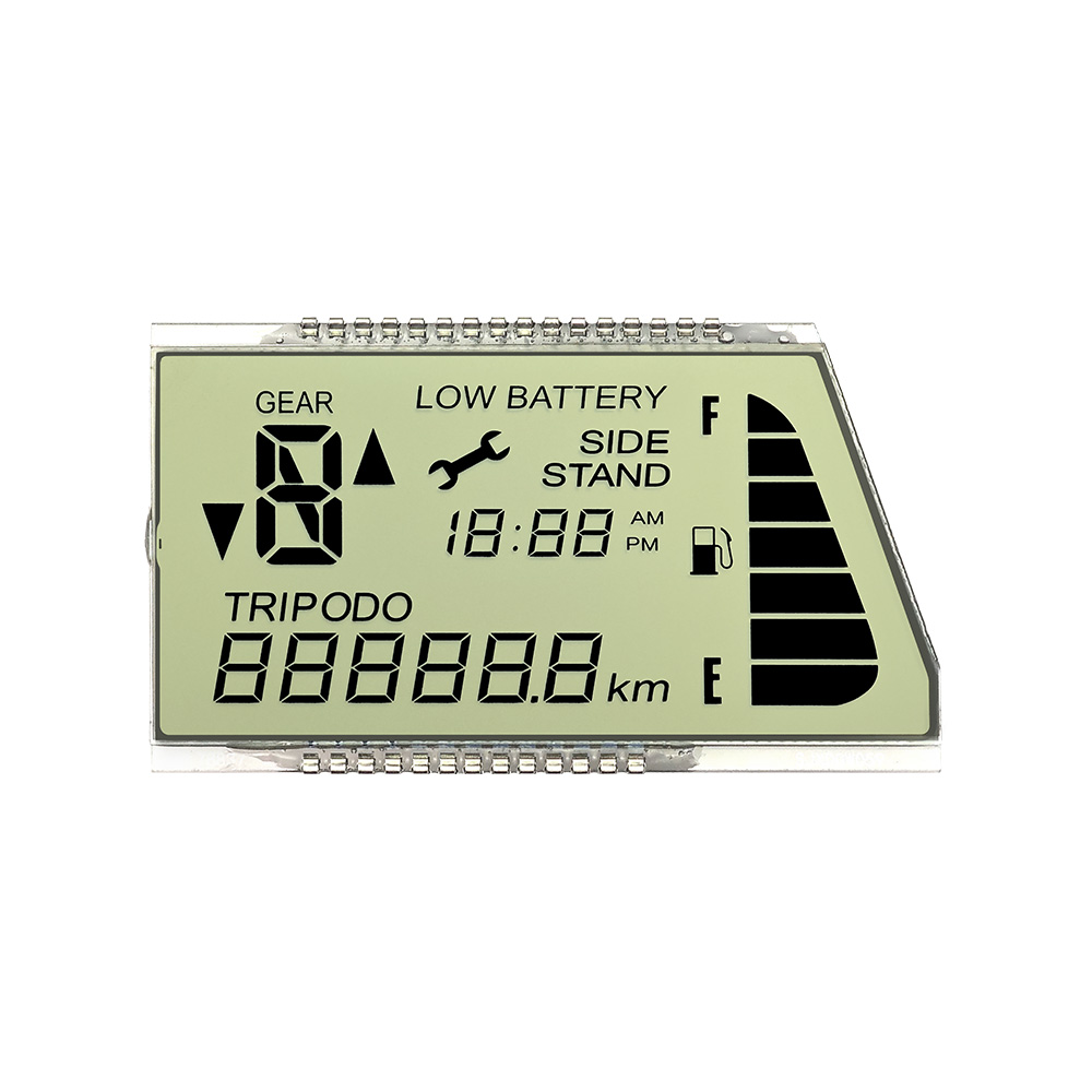 Motorcycle Segment LCD is designed for motorcycle dashboards, offering clear segmented digits and symbols, हाई कॉन्ट्रास्ट, विस्तृत देखने का कोण, कम बिजली की खपत, and reliable performance in vibration and harsh outdoor environments.