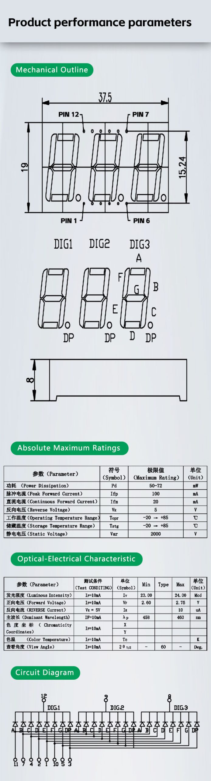Digital tube display using high-brightness LED segments to present clear numeric information. It features fast response, low power consumption, stable performance, and wide viewing angle, making it suitable for instruments, meters, clocks, and industrial control panels.