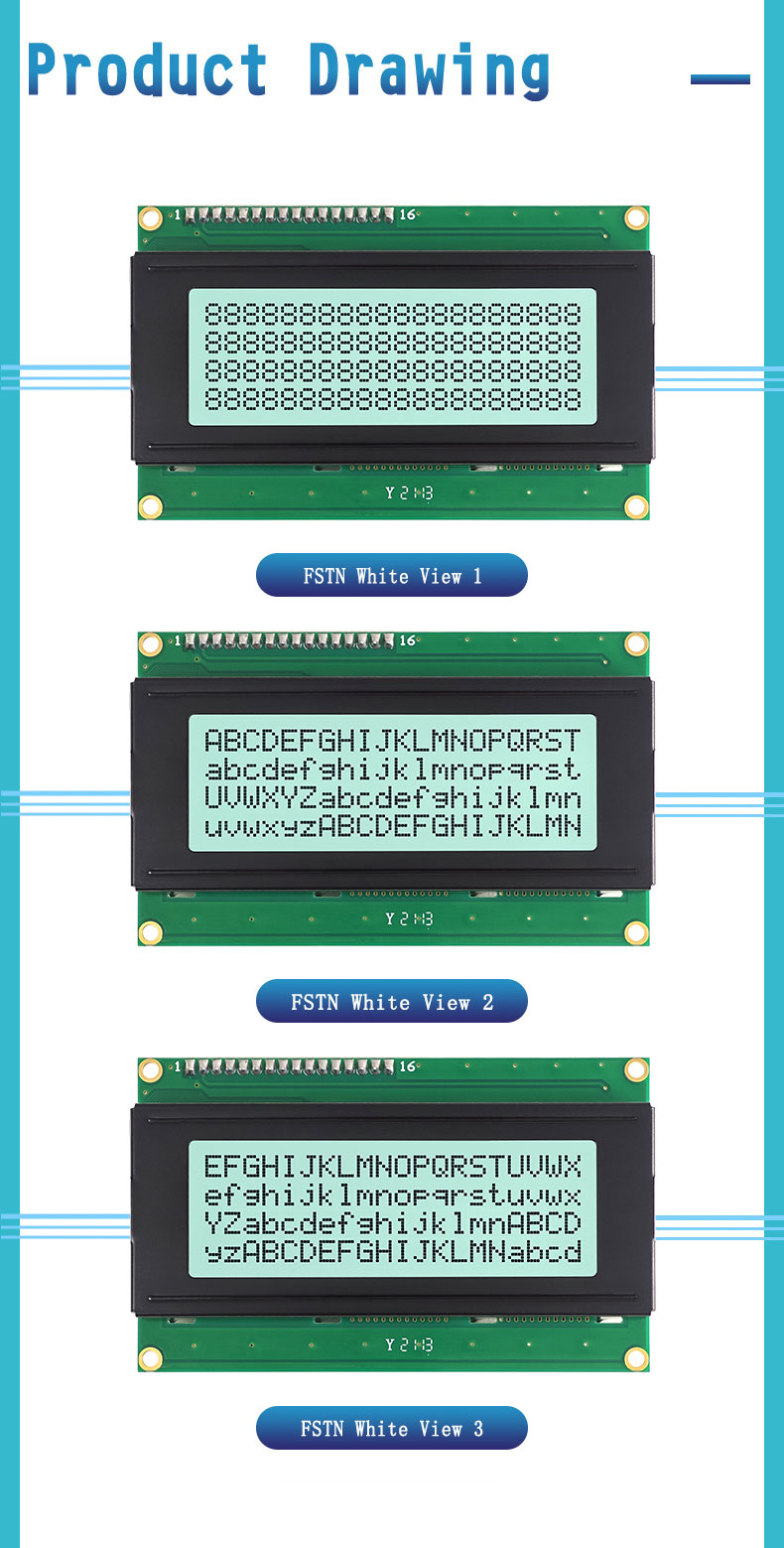 A: Character LCD screens are widely used in home appliances, industrial controls, medical devices, consumer electronics, and DIY projects, suitable for displaying status information, menu options, and basic data.