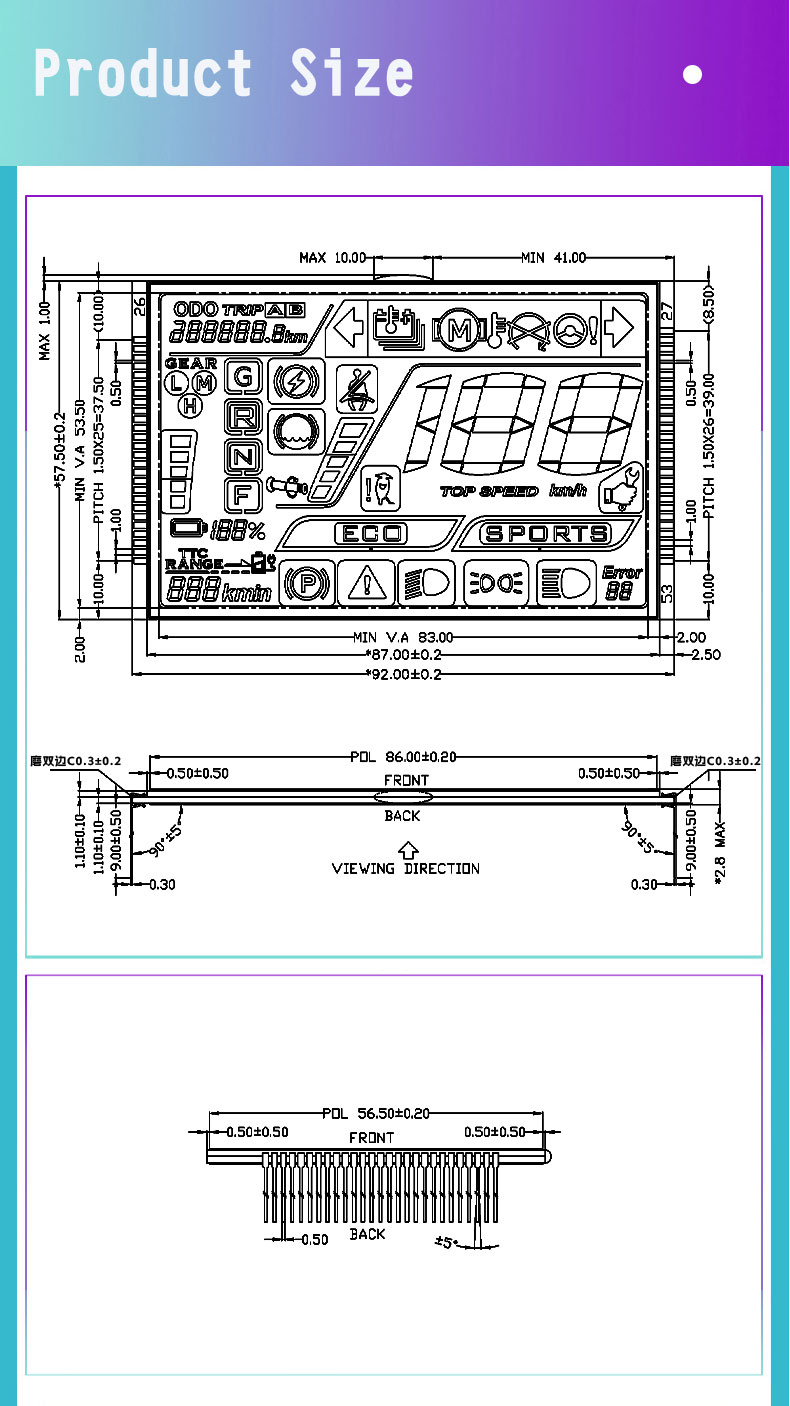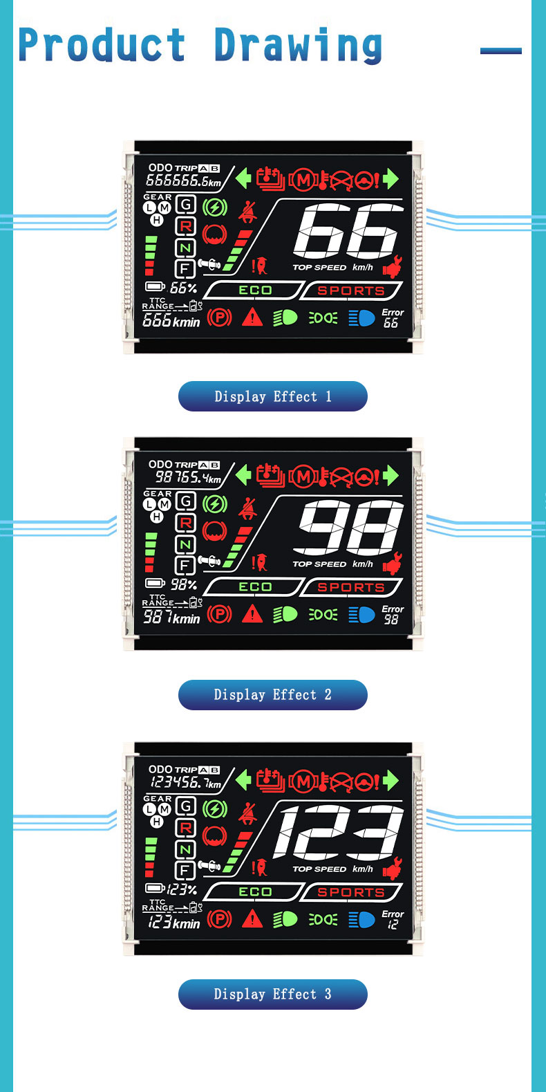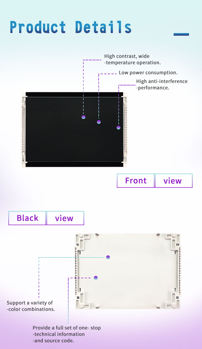 Segment Color Screen offers vivid and sharp visual performance with multi-color segments, ensuring clear readability. It features low power consumption, durable construction, and wide viewing angles, making it ideal for consumer electronics, industrial instruments, automotive dashboards, and smart home devices.