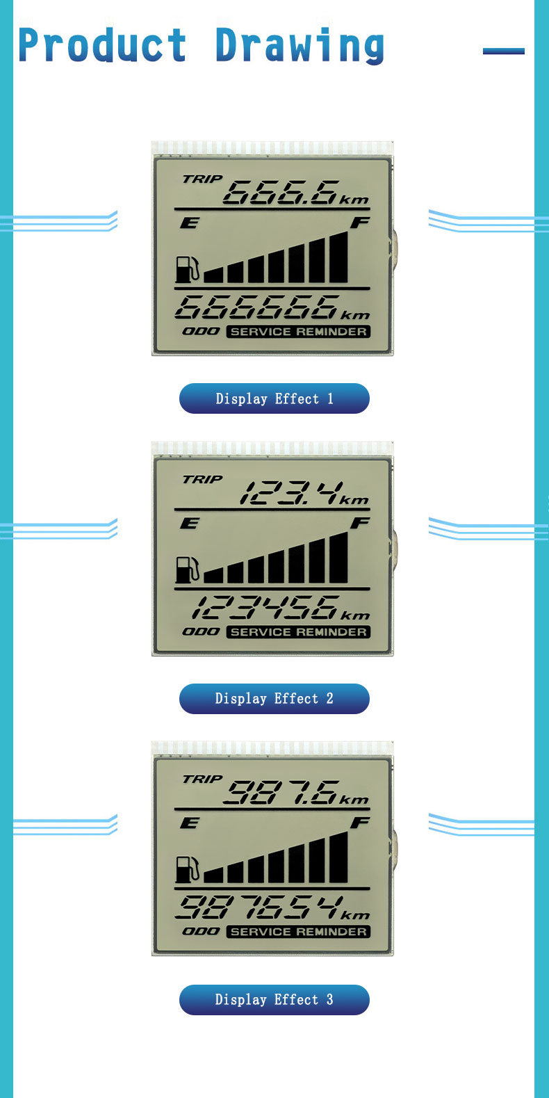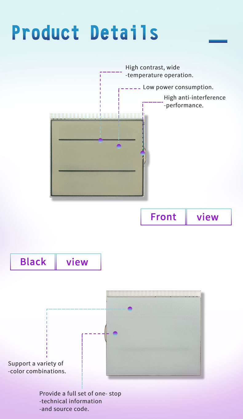 Small Size Segment Display ,a compact and energy-efficient display module designed for portable and handheld devices. It provides sharp numeric and symbolic readouts with excellent visibility and stability, even in low-light conditions. Featuring low power consumption, high contrast, and durable construction, it is ideal for applications such as meters, instruments, medical equipment, and consumer electronics where space-saving and reliability are essential.