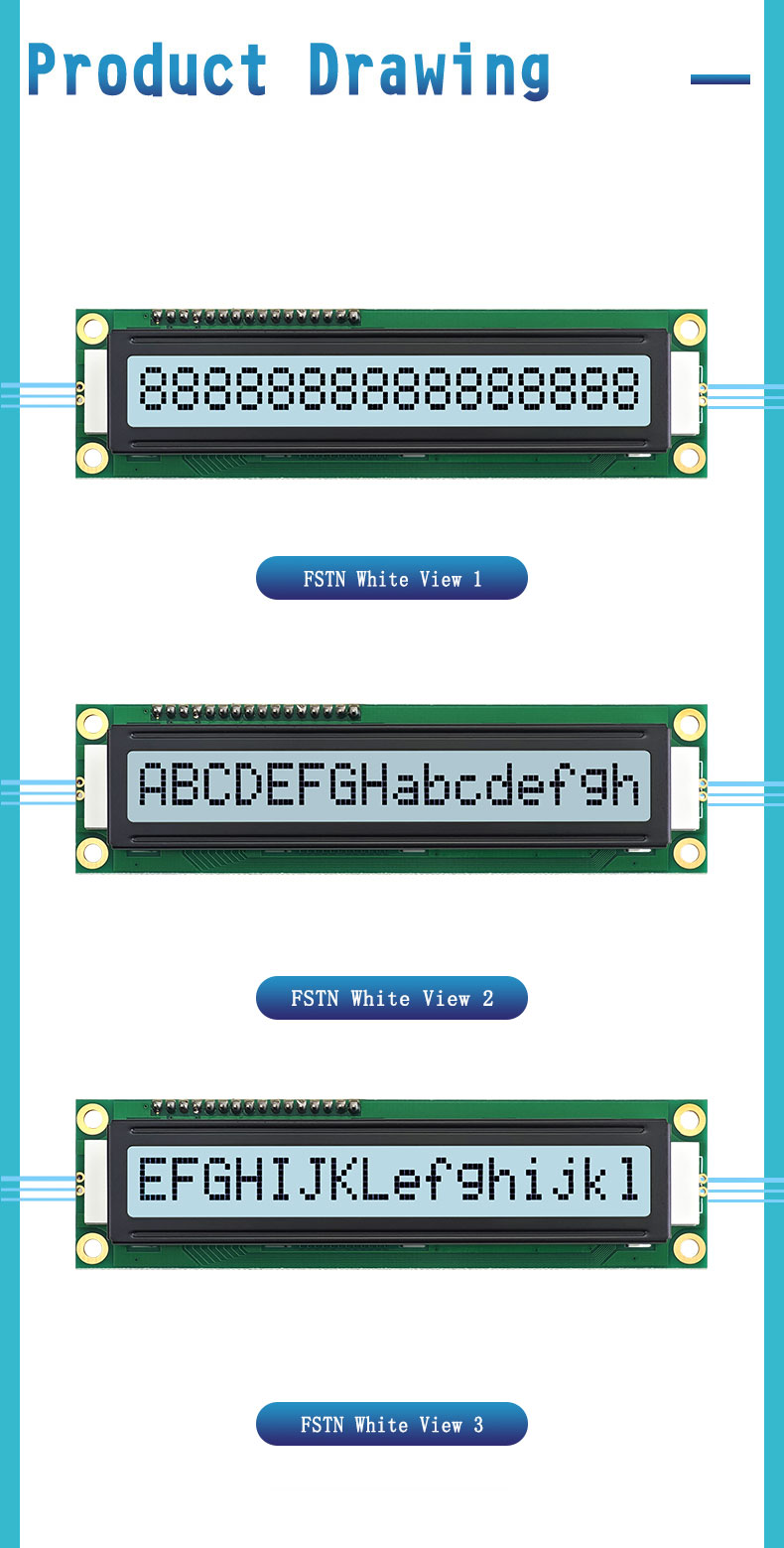 اے: ماڈیول کسٹمر کی ضروریات کے مطابق اپنی مرضی کے مطابق کیا جا سکتا ہے, کریکٹر ڈسپلے مواد سمیت, backlight رنگ, شیل ڈیزائن, اور دیگر پیرامیٹرز, درخواست کی مخصوص ضروریات کو پورا کرنے کے لیے.